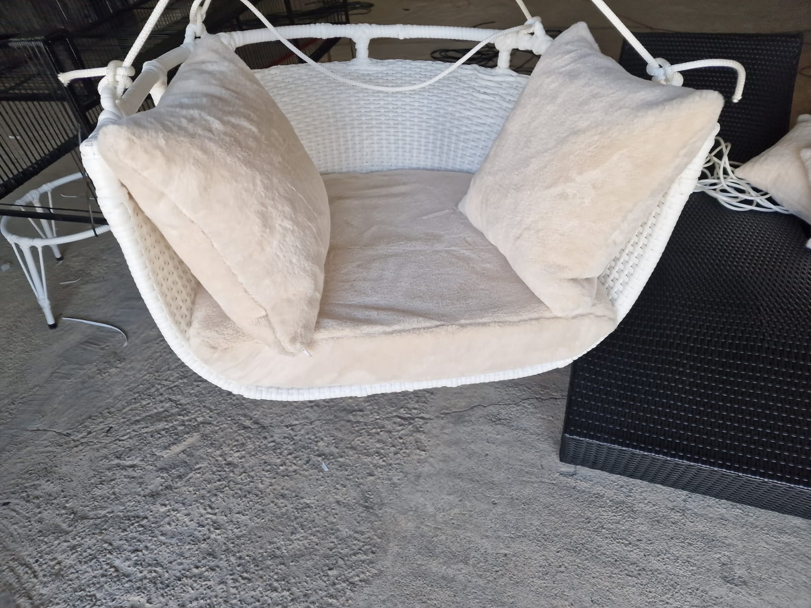 Leagăn suspendat, din ratan potrivit pentru petrecerea după-amiezelor. Construcţia solidă din metal oferă o durabilitate şi o rezistenţă excelentă, iar designul său modern se va potrivi cu usurinţă oricărui decor.