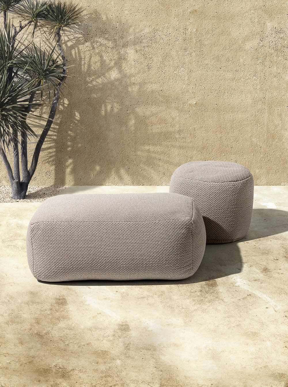 Completați spațiul de relaxare cu un set de doi tabureți din puf, creați pentru confort și eleganță în orice colț al casei sau al terasei.